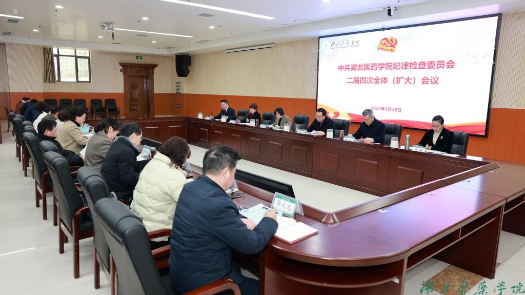 本网讯(文/付轶 图/鲍晓宇)2月29日下午,中共湖北医药学院第二届纪律检查委员会第四次全体会议召开。校党委常委,纪委委员、各分党委书记、各学院院长、药护学院党委负责人、各部门负责人、党员代表、教职工代表、各分党委纪检委员和校纪检监察机构干部参加会议。会议由党委常委、纪委书记、监察专员徐荣主持。