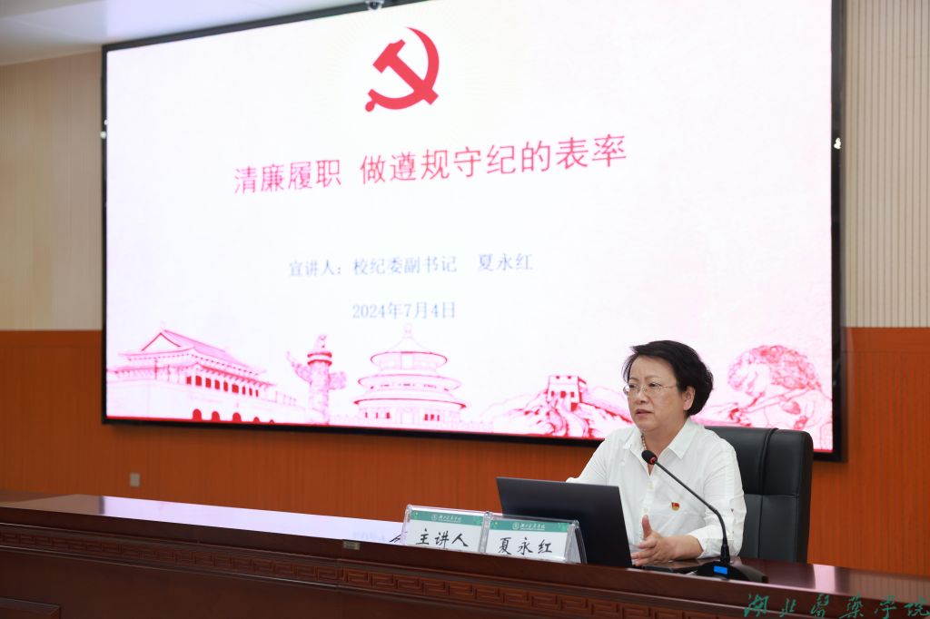 下午的专题培训会上,校纪委副书记夏永红以《清廉履职 做遵规守纪的表率》为题,从深刻认识《条例》修订的重要意义、准确把握《条例》修订的主要内容、认真抓好《条例》的学习贯彻执行、高校领域违纪典型案例剖析等四个方面作辅导报告。讲解深入细致,案例剖析贴近高校实际,以案说德、以案说纪、以案说法、以案说责,具有很强警示教育意义。发展规划与政策法规处政策法规科科长吕圣子以《高校领域关键岗法律风险防范与应对》为题,通过校内外的真实案例讲述高校人事管理、科研经费管理、合作办学等领域的涉法涉诉风险,给出违约金、返聘、解聘、科研成果转化、科研经费管理、科研泄密、合作办学等高校法律风险的防范对策。